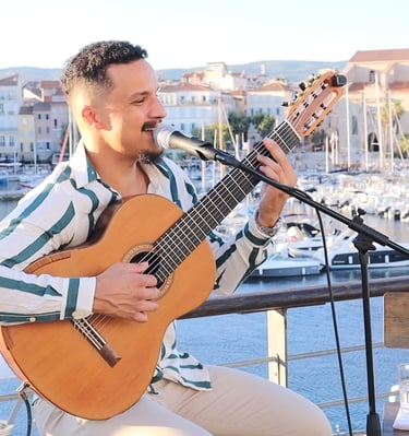 Offrez une ambiance bossa nova élégante pour vos événements premium avec notre musicien solo.